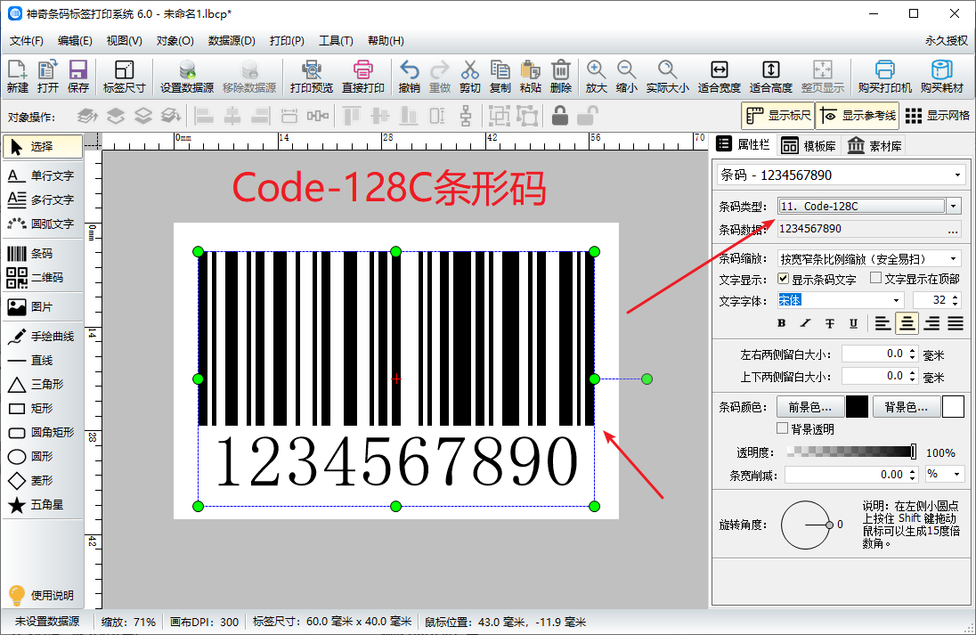 使用神奇条码标签打印系统可以轻松创建Channel Code类型的条形码,如下图: