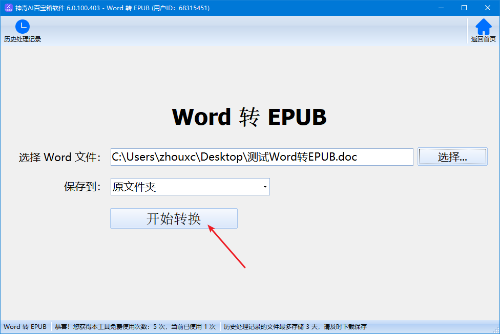 神奇AI百宝箱软件功能介绍:文档转换 - Word转EPUB功能