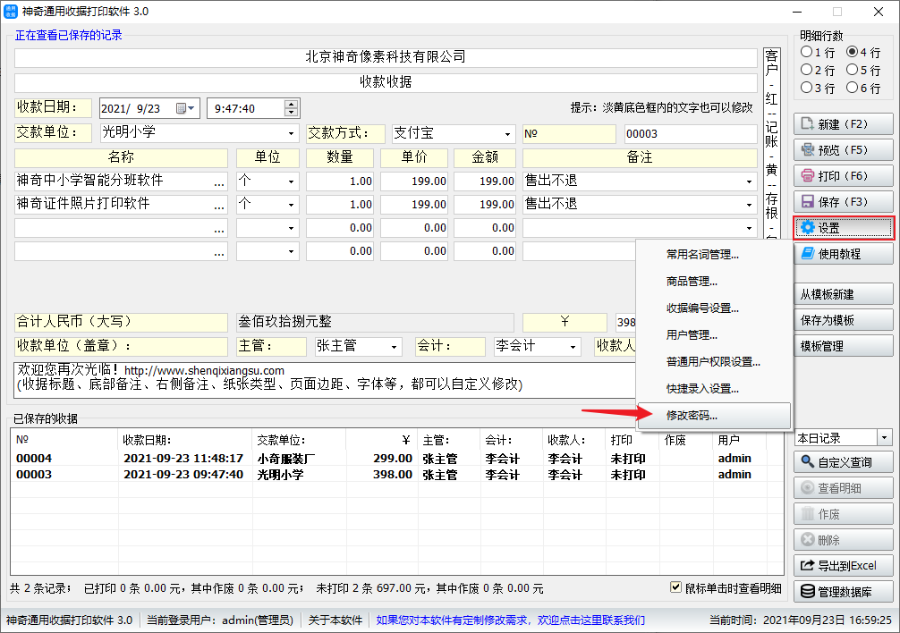 2、收据编号位数可以自行设置,也可以添加自定义前缀和时间前缀。