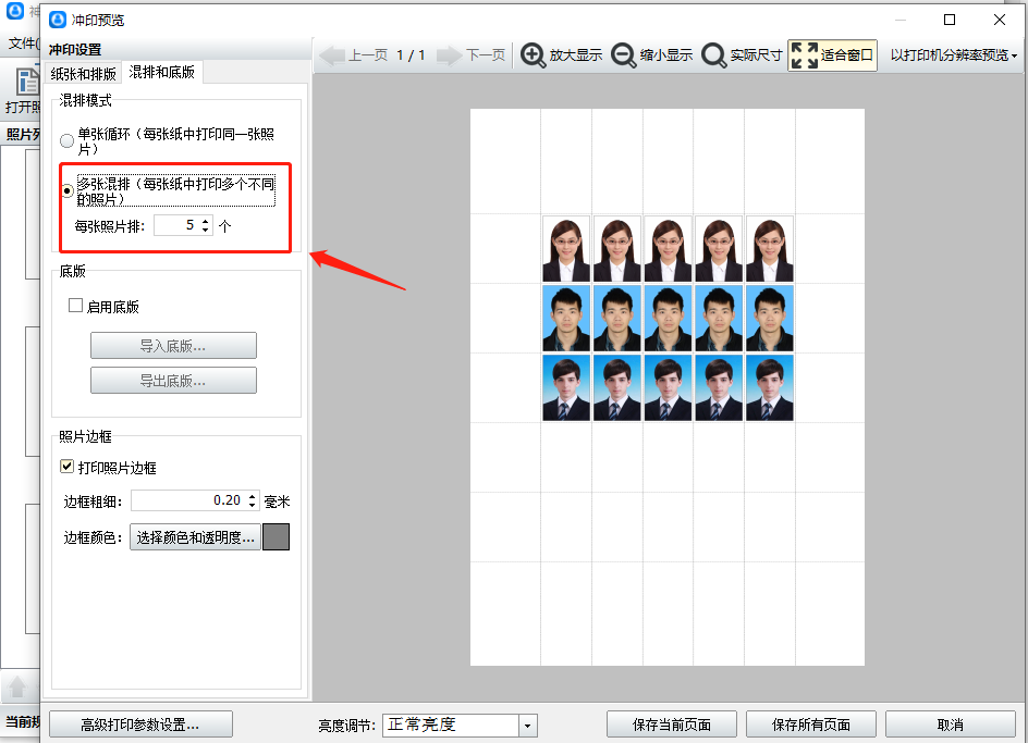 5.在冲印设置还可以选择“混排和底板”功能,如图所示: