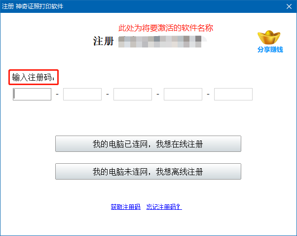 将发送给您的格式为“XXXXX-XXXXX-XXXXX-XXXXX-XXXXX”的注册码(注册码一共25个字母,分为5组),依次将注册码按照顺序输入到“输入注册码”底下的输入框中(注意:横线“-”已存在,不需要输入)。