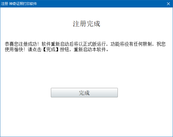点击“完成”按钮即可。此时软件会自动关闭,您只需再次启动软件,此时软件已激活,可正常使用,没有任何功能限制。